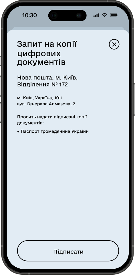 Клієнт підтверджує запит на передачу копії документа Дія.Підписом
