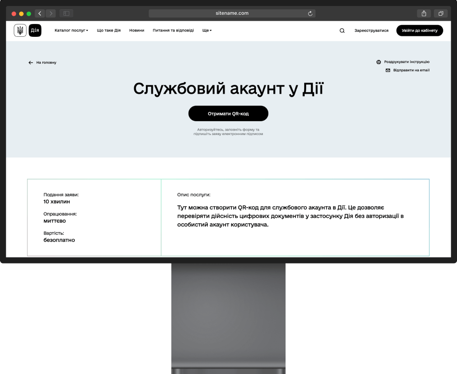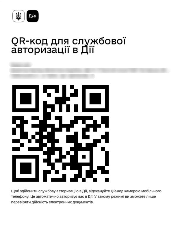 Отримує QR-код для службової авторизації в застосунку Дія. Та передає його працівнику, який перевірятиме цифрові документи