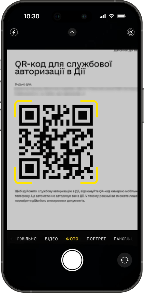 Працівник камерою смартфона або планшета зчитує QR-код для службової авторизації та переходить за посиланням