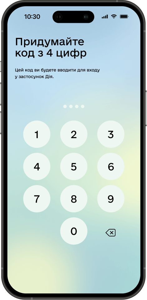 Придумує код для входу в застосунок та вводить його повторно. Автоматично відкриється сканер QR-кодів